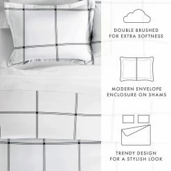 Promo 👍 Cheap ✨ Gray Grid Print 3-Piece Twin/Twin Extra Long Duvet Cover Set by Becky Cameron ❤️ ⌛