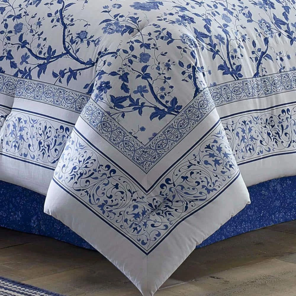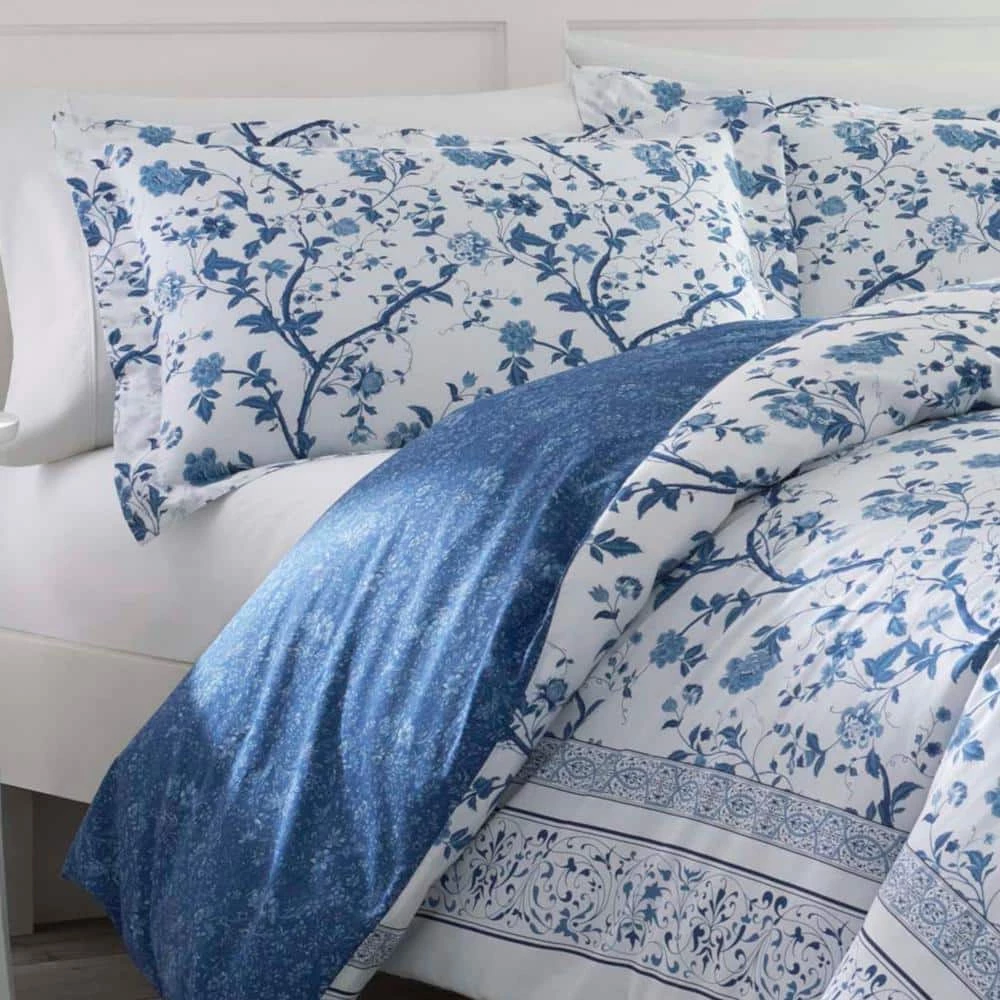 Laura Ashley Charlotte duvet cover set brings a the timeless appeal to any bedroom. The centerpiece of the collection is an elegant “tree of life” print that appears on the standard shams and duvet cover where it is framed by an intricate double border pieced on the outer edges. This gorgeous collection is 100 Percent cotton and machine washable for easy care. Duvet cover features button closure with inner ties. Twin duvet cover set includes 1-duvet cover (86 in. L x 66 in. W) and 1-sham (21 in. L x 27 in. W). full/queen duvet cover set includes 1-duvet cover (92 in. L x 88 in. W) and 2-shams (21 in. L x 27 in. W). King duvet cover set includes 1-duvet cover (92 in. L x 106 in. W) and 2-shams (21 in. L x 37 in. W).