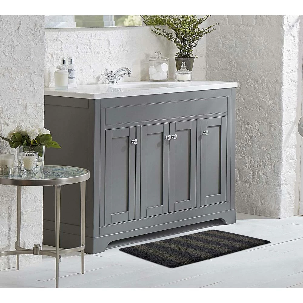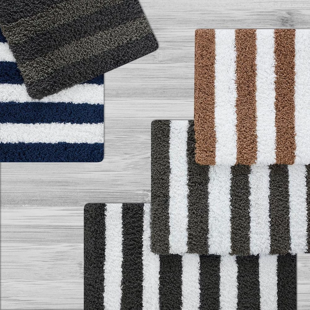 Transform your bathroom into luxury with the Laura Ashley Eden Stripe bath mat. This bath mat collection has an elegant design that will blend seamlessly with your existing bathroom decor. It is constructed with a latex backing, creating a non-slip mat during all times. Water is no long a problem with Its super soft 100% Polyester material that creates a thick mat allowing your mat to absorb water easier than ever. It will be the perfect luxurious addition to your bathroom. This Tufted rug features a low profile which allows cabinet doors to open easier than ever. These bat mats are machine washable and easy to clean no matter the mess. Available in multiples styles and designs. When caring for mat we recommend to machine wash cold separately. Do not iron. Do not dry clean. Tumble dry on low. Vacuum or shake as needed. Imported.