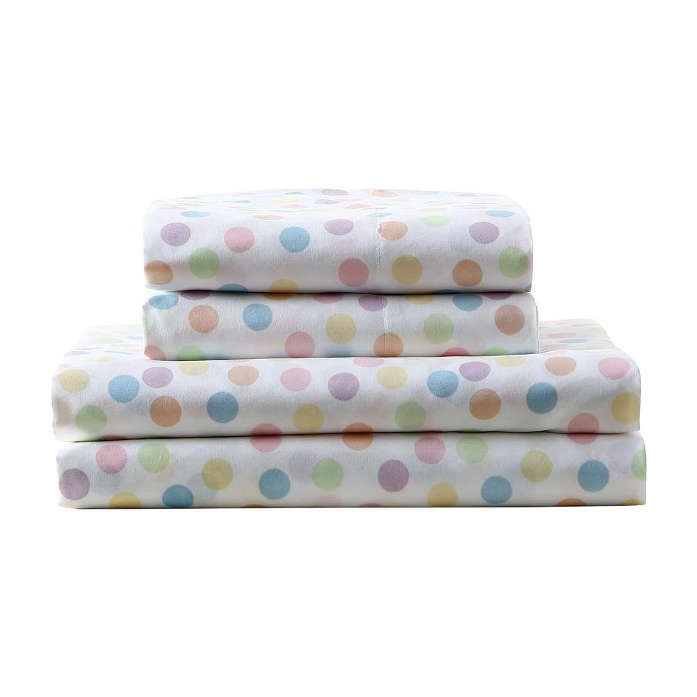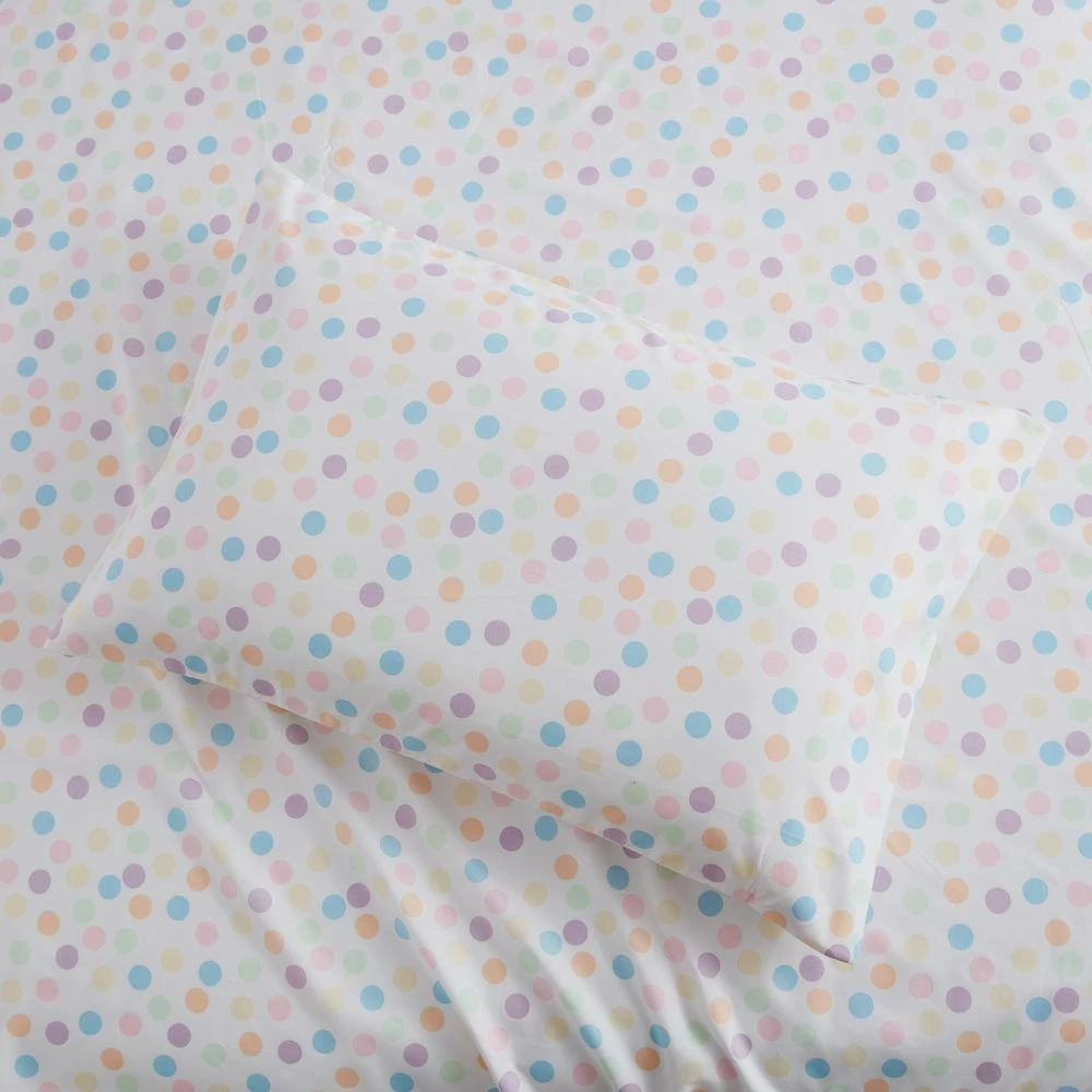 Who doesn’t love polka dots? Your kids will be asking to go to bed with the colorful and fun kute kids Polka Dot Galore Sheet Set. Crafted from soft and durable 100% microfiber, these sheets are ultra-soft yet durable. Each set includes sweet designs with bold and bright colorful polka dots. Machine washable for added convenience. Each set includes one fully elasticized fitted sheet, one flat sheet and two matching pillowcases (twin set includes one pillowcase.) Sweet dreams.