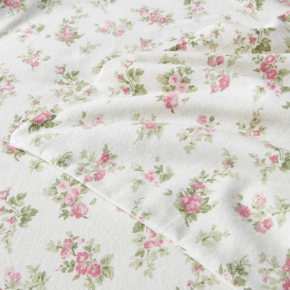 - The Laura Ashley Audrey Flannel Sheet features a pretty pink floral print on a soft cream ground