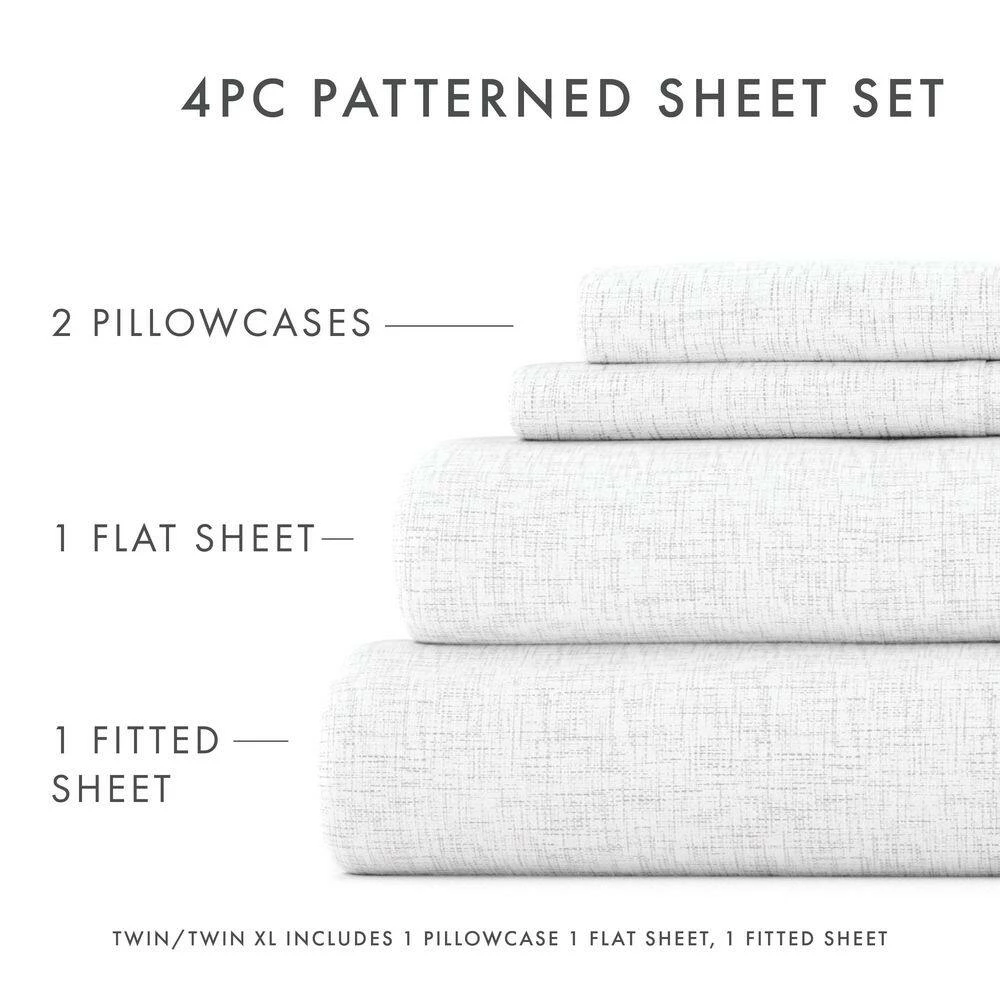 - 4-piece set includes 1-flat sheet, 1-fitted sheet, and 2-pillowcases (twin sets come with 1-pillowcase)