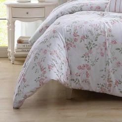 - The Laura Ashley Annabelle pattern features a pink on pink or white on white design trimmed with crocheted lace