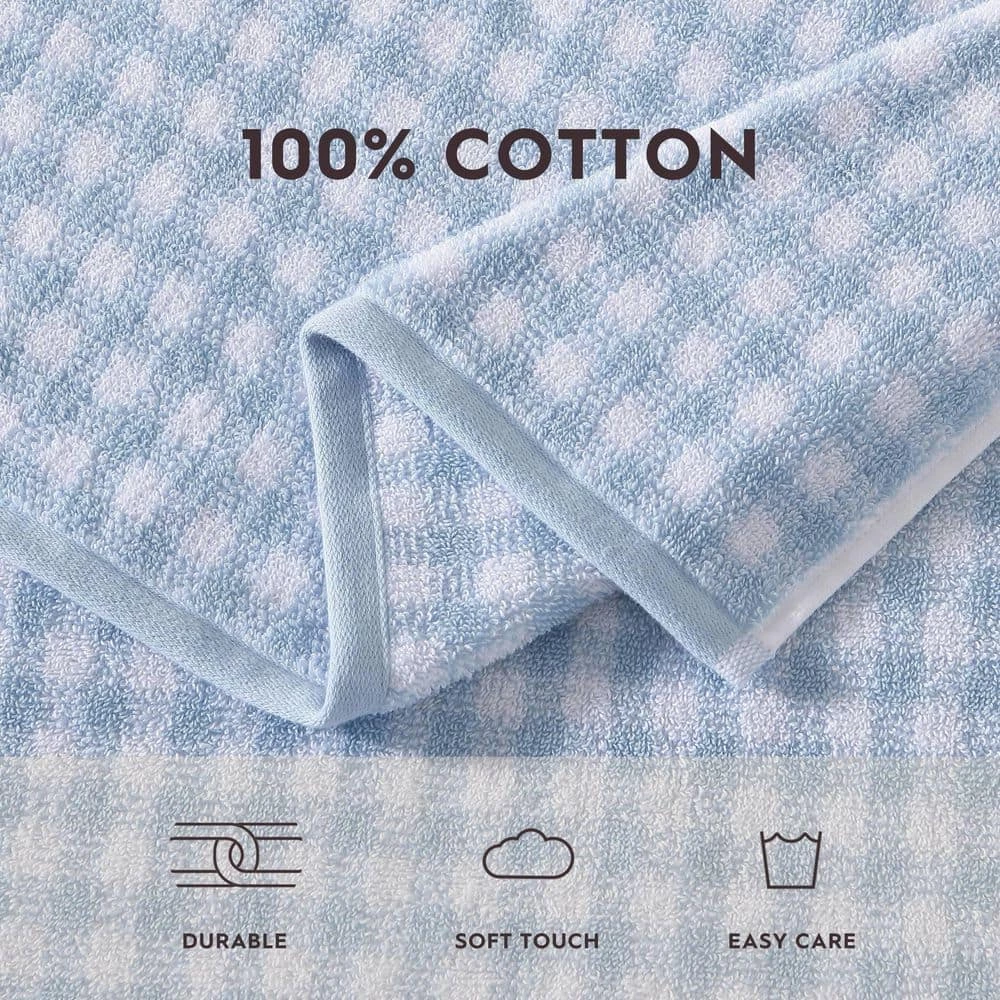 The Laura Ashley ginny towel set will add a touch of cheerful gingham to your bathroom. available in 2 color options, blue/white and tan/white. blue/white coordinates with Laura Ashley Cynthia shower curtain. Towels are medium weight 600 gsm and yarn dyed for color-fastness. Upgrade your bathroom or guest bath with this 3-piece set, including 1 bath towel, 1 hand towel and 1 wash cloth.