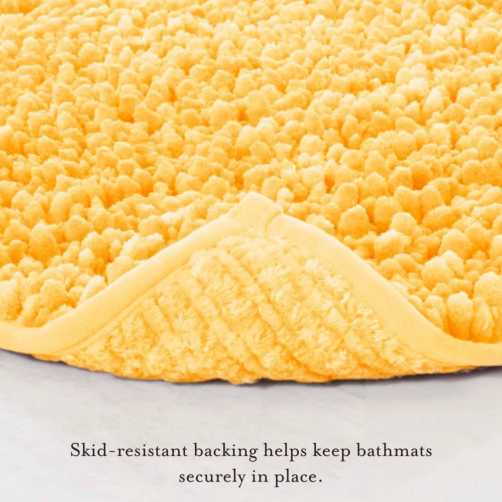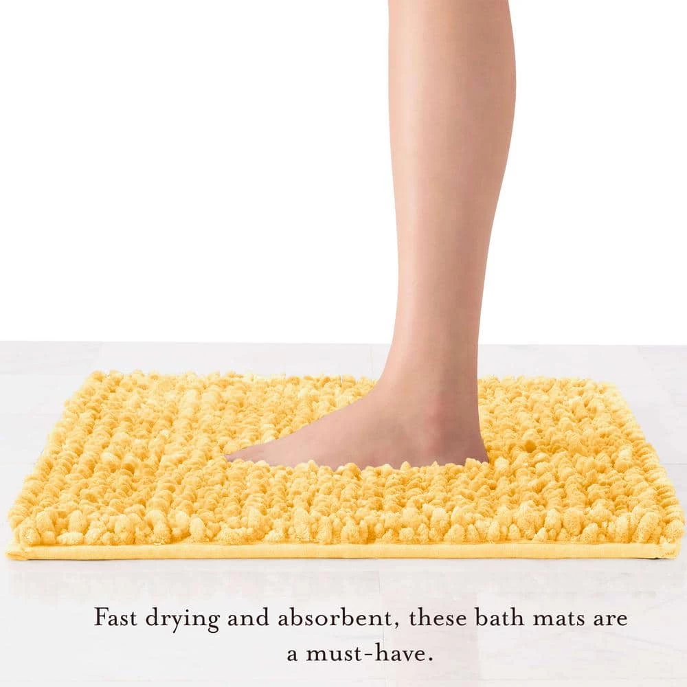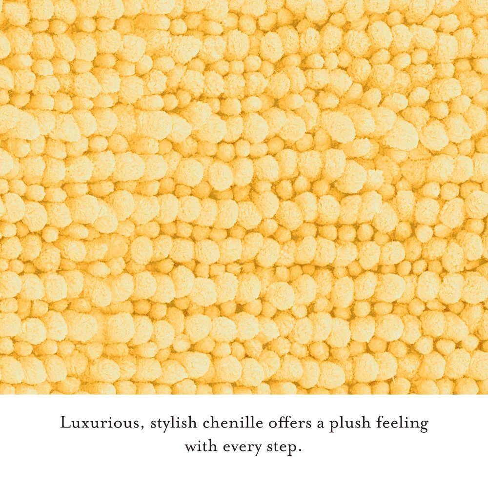 Transform your bathroom into a home SPA oasis. Laura Ashley Butter Chenille Bath Mat Collection features an exceptionally silky, velvety chenille, perfect for stepping out of the shower or bath. Non-skid backing helps keep mats firmly in place. Durable binding maintains shape for long-lasting use. 2-piece set includes (1) 17 in. x 24 in. bath rug and (1) 20 in. x 34 in. bath rug. Machine wash cold, delicate cycle with mild detergent. Do not bleach. Hang dry. Shake to restore fluff. Face: 100% polyester. Backing: SBE/Hot melt spray. Imported.