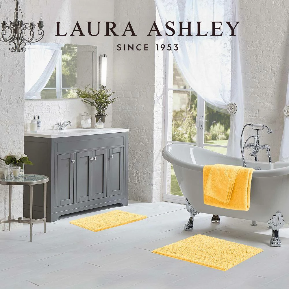 - Includes (1) 20 in. x 34 in. and (1) 17 in. x 24 in. chenille Laura Ashley bath rugs