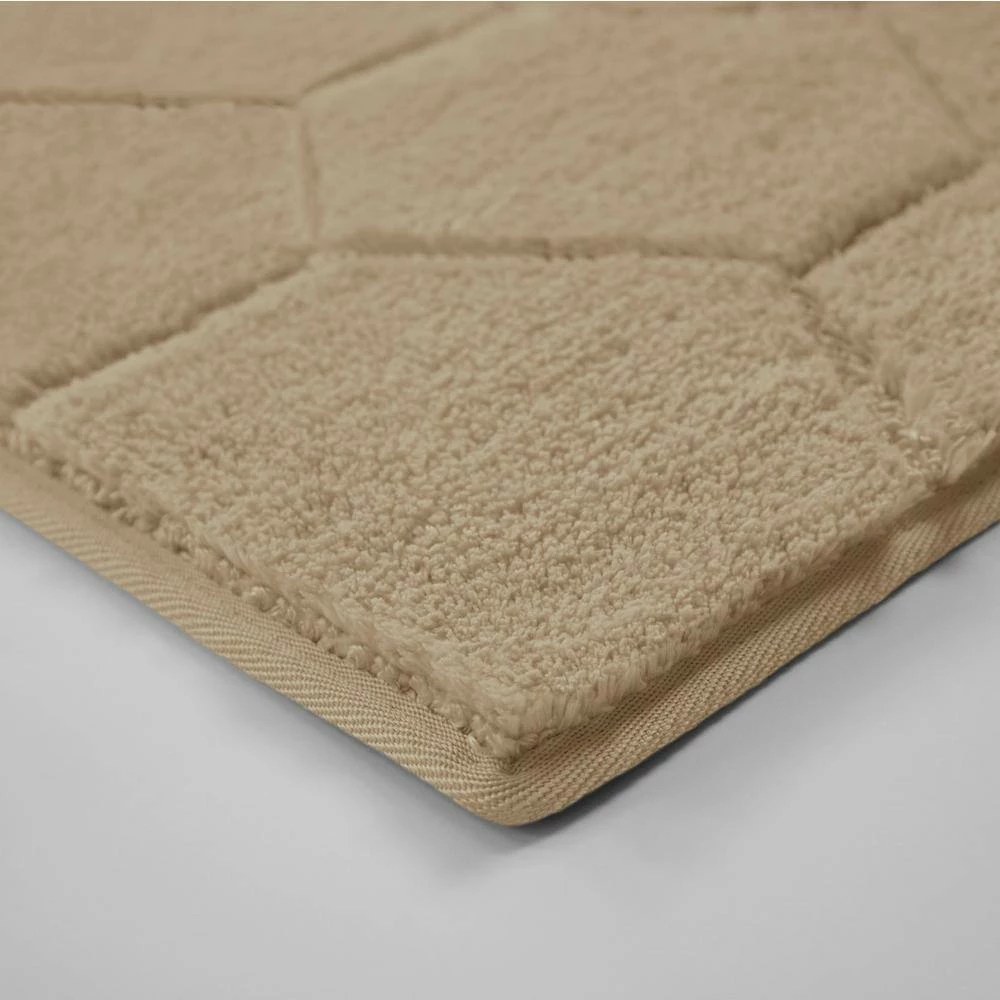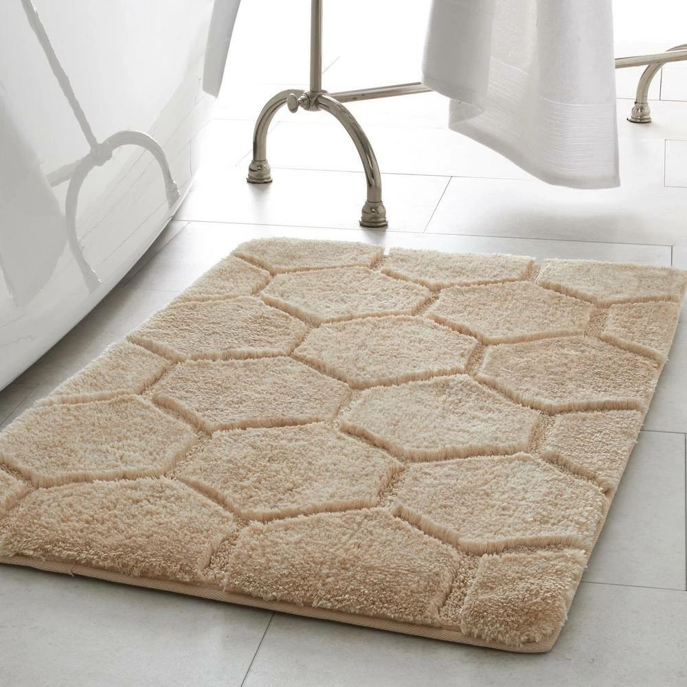 Style your bathroom with this Laura Ashley Pearl Honeycomb Bath Rug for a fun, stylish look. Luxurious high pile sheared fibers and low loop tufted yarns are highly absorbent and soft underfoot. Coordinating durable binding helps maintain shape for long-lasting use.