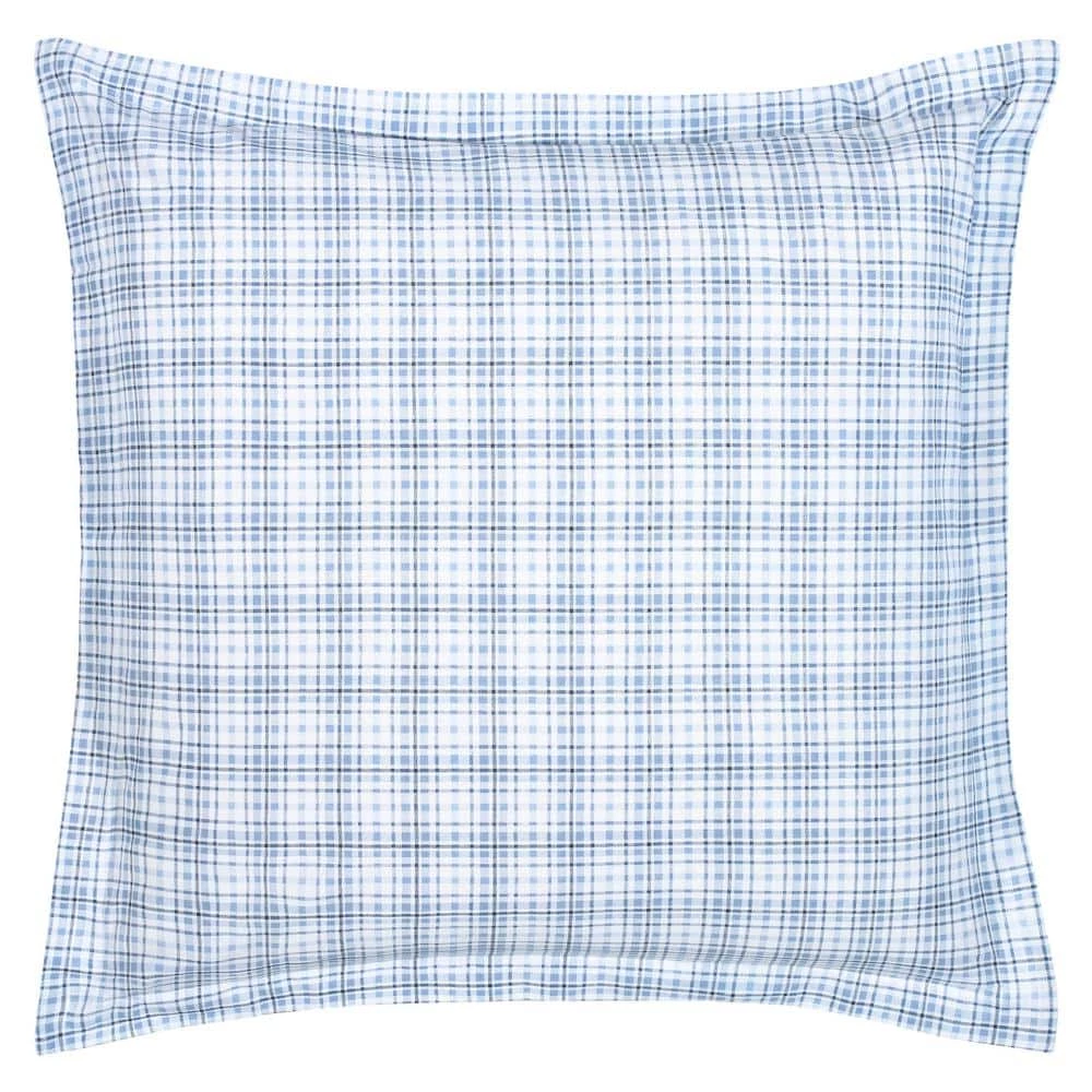 - A sunny buttercup yellow background is the perfect showcase for these romantic blue roses. A pale damask shadow effect in the background adds additional depth and interest to this lovely print. The blue and white plaid reverse appears on the European sham