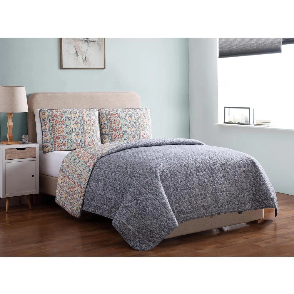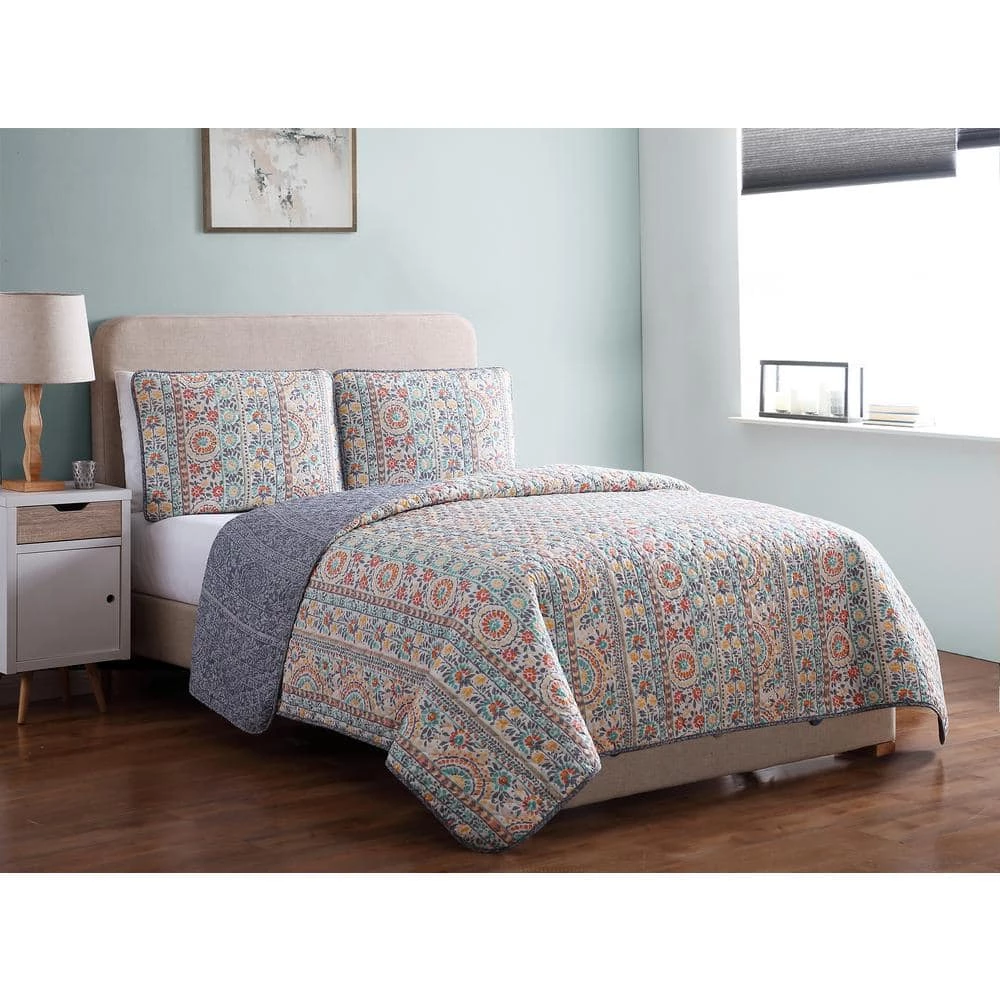 The MHF Home Colleen Floral Quilt Set is the perfect combination of fashion forward design and casual style. Created from a strong and plush microfiber the ultra-soft quilt and matching shams will rejuvenate any bedroom. The reversible print compliments itself and allows for design changes. The perfect weight for year round comfort. Machine washable for added convenience. The digital images displayed have the most accurate color possible. Due to differences in computer monitors, we are not responsible for variations in color between the actual product and your screen.