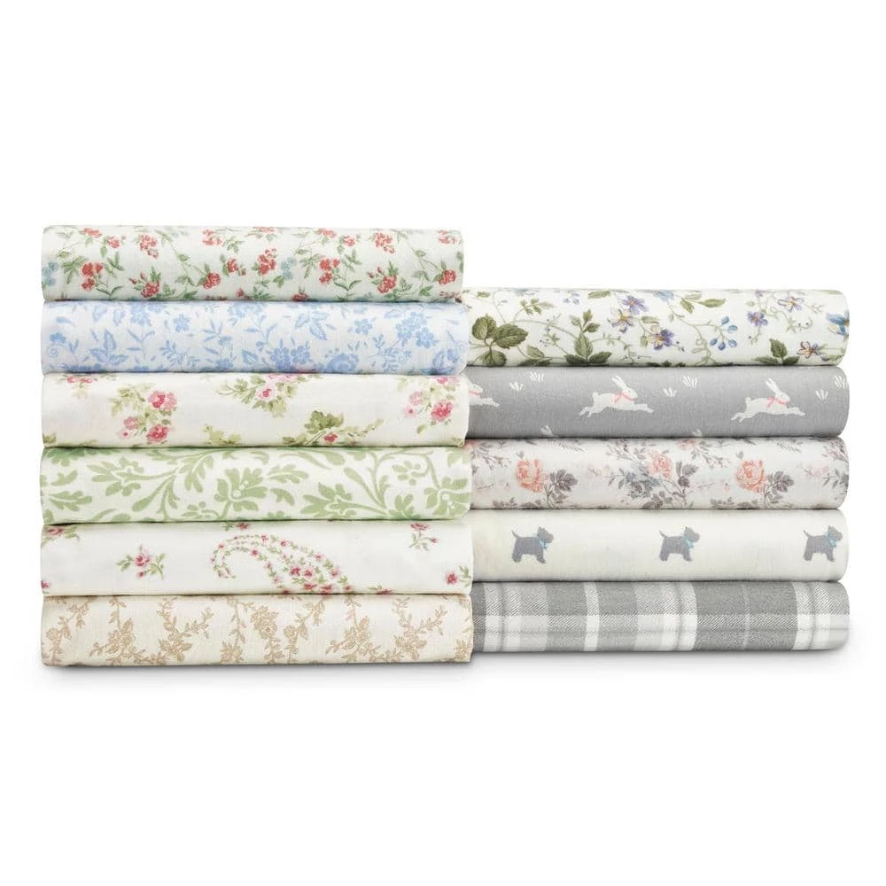 - Laura Ashley Flannel Sheet Sets feature signature Laura Ashley prints and solid colors that mix and match perfectly with her bedding collections