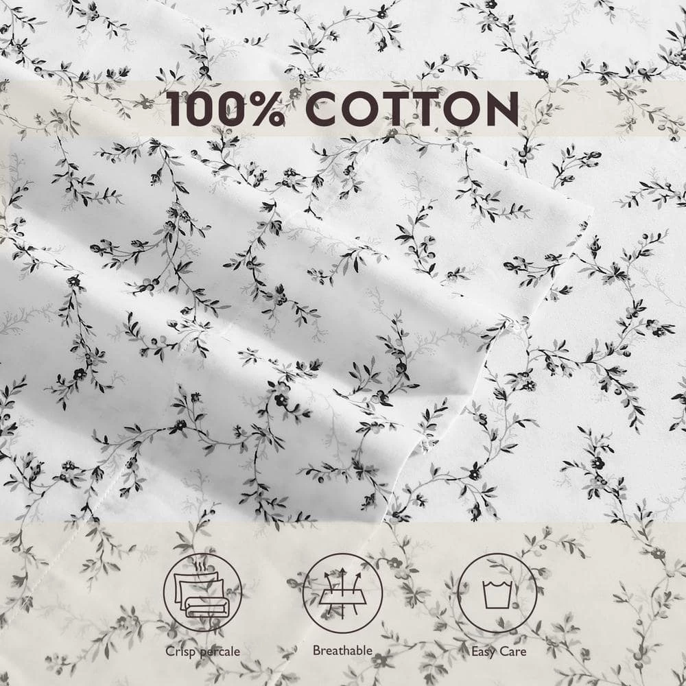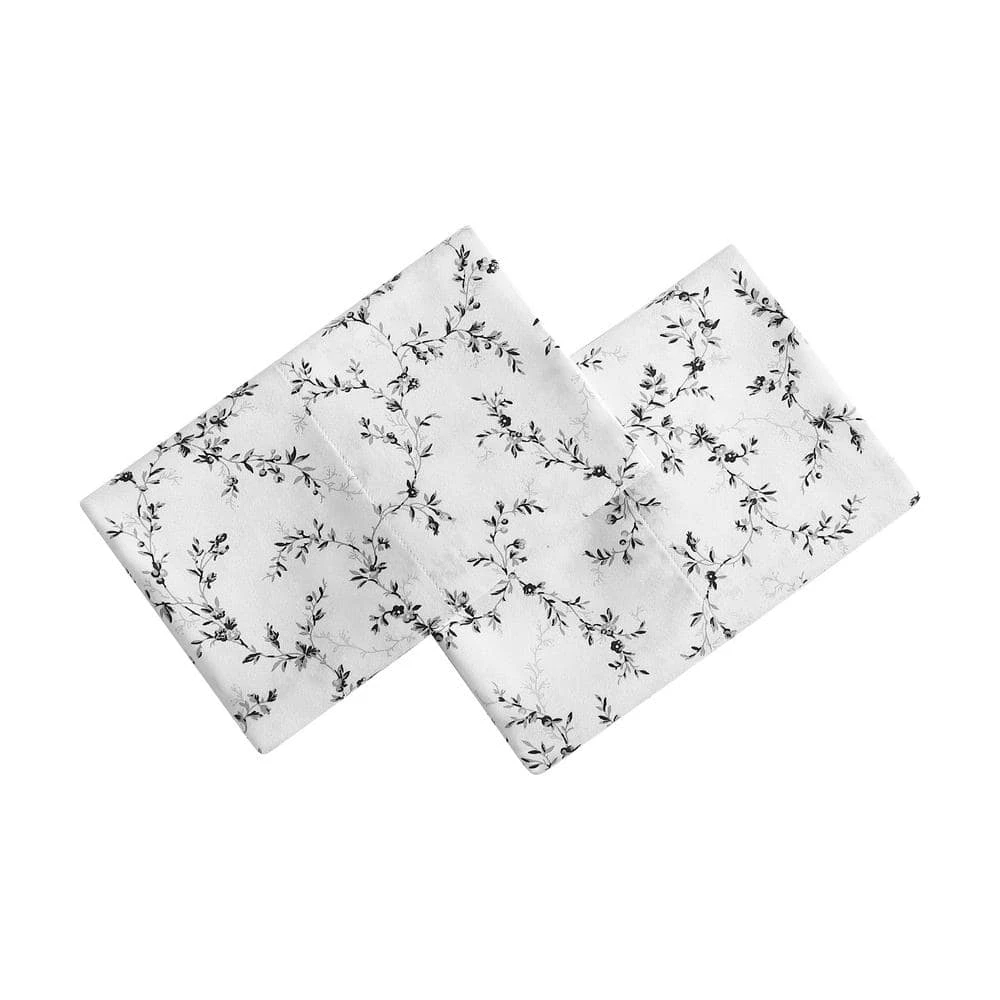 - Laura Ashley sara’s spring printed pillowcases includes black and grey shadowy vines on white for a unique neutral floral look
