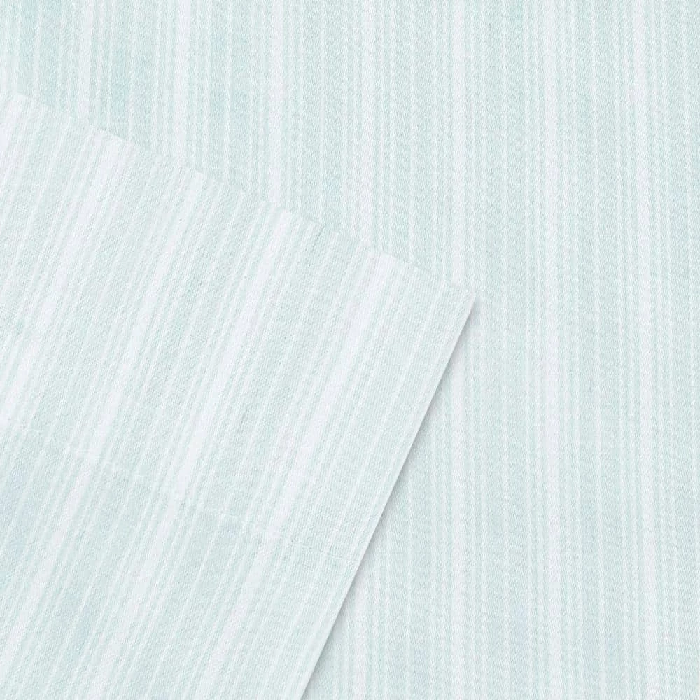 Bring gorgeous cottage charm to your bedroom with the Laura Ashley Lottie Cotton Sateen Sheet Set. Made of cotton sateen, these delicate blue and white striped sheets feel especially soft and smooth and coordinate with any style bedding ensemble. Twin sheet set includes: one flat sheet (96″L x 66″W), one fitted sheet (75″L x 39″W), and one standard pillowcase (21″L x 32″W ). Full sheet set includes: one flat sheet (96″L x 81″W), one fitted sheet (75″L x 54″W), and two pillowcases (21″L x 32″W). Queen sheet set includes: one flat sheet (102″L x 94″W), one fitted sheet (80″L x 60″W), and two pillowcases (21″L x 32″W). King sheet set includes: one flat sheet (102″L x 112″W), one fitted sheet (80″L x 78″W), and two pillowcases (21″L x 42″W). Twin fully elasticized fitted sheet fits mattresses up to 13″ deep. Full fully elasticized fitted sheet fits mattresses up to 14″ deep. Queen and king fully elasticized fitted sheet fits mattresses up to 15″ deep.