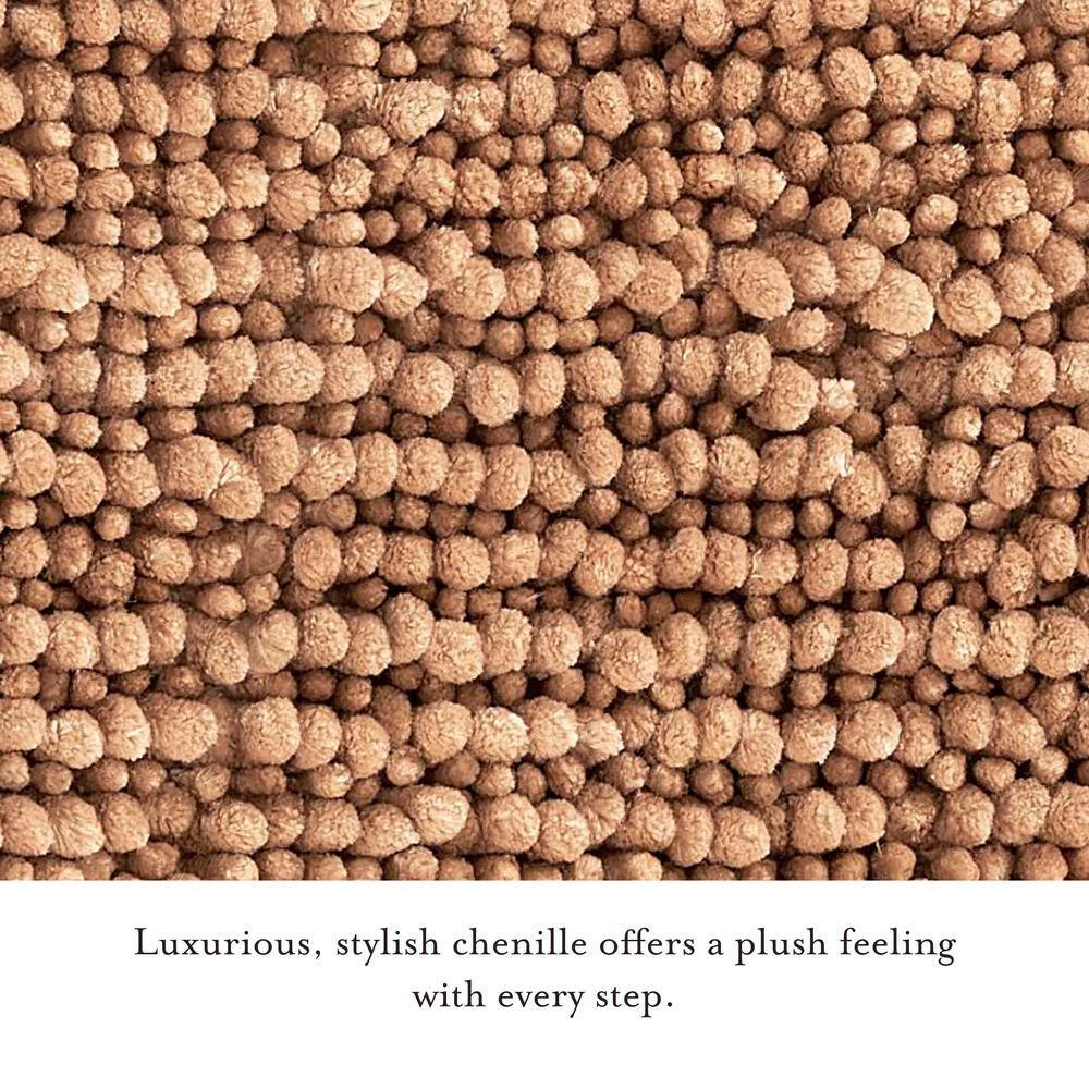 Transform your bathroom into a home spa oasis. Laura Ashley Butter Chenille Bath Mat Collection features an exceptionally silky, velvety chenille; perfect for stepping out of the shower or bath. Non-skid backing helps keep mats firmly in place. Durable binding maintains shape for long-lasting use.Includes (1) 20″ x 34″ Laura Ashley bath mat. Machine wash cold, delicate cycle with mild detergent. Do not bleach. Hang dry. Shake to restore fluff. Face: 100% polyester. Backing: SBE/Hot melt spray. Imported.