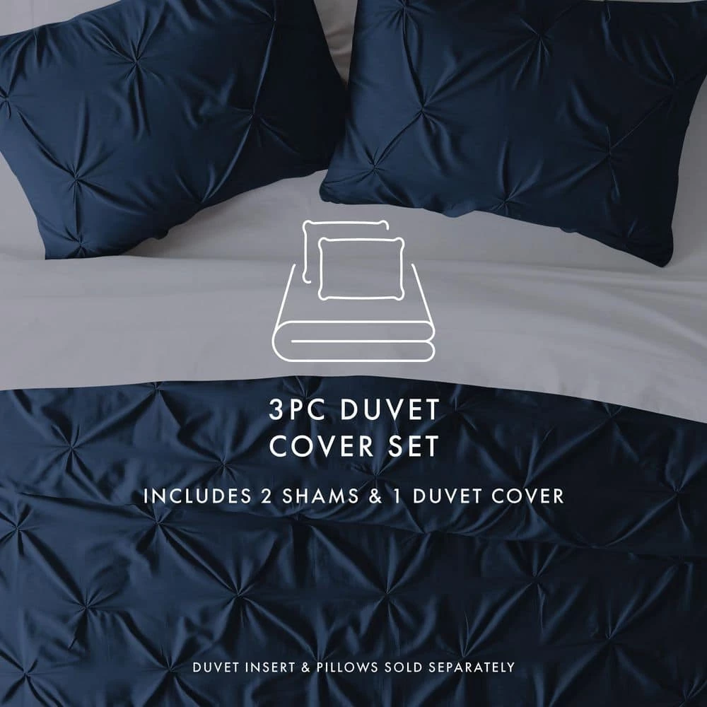 Enjoy the ultimate comfort and elegance with the 3-Piece Pinch Pleat Solid Duvet Cover Set by iEnjoy Home. Both the Duvet Cover and the matching Shams are crafted with the finest microfiber that’s softness is unsurpassed. In addition, this quality set is durable, fade resistant and wrinkle free. The 3-Piece Duvet Cover Set comes in 2 gorgeous colors guaranteed to match any style.