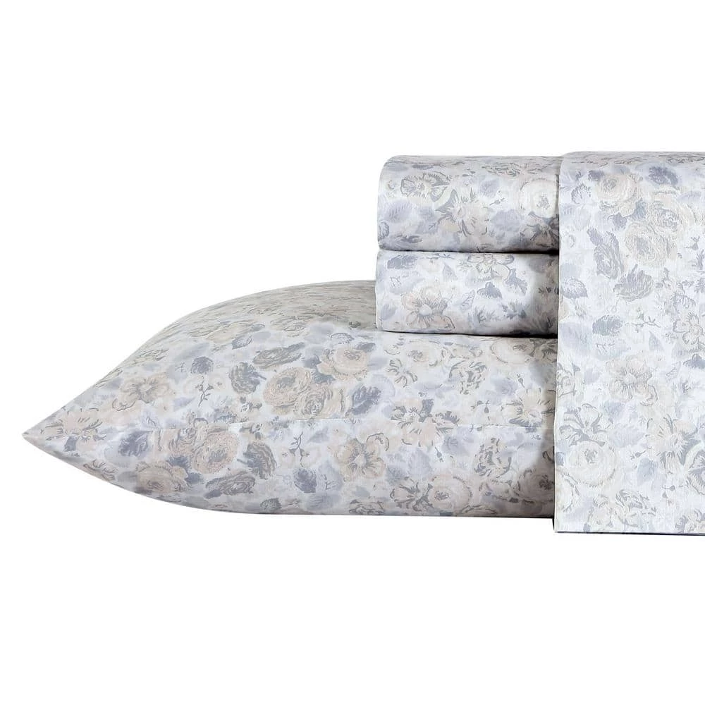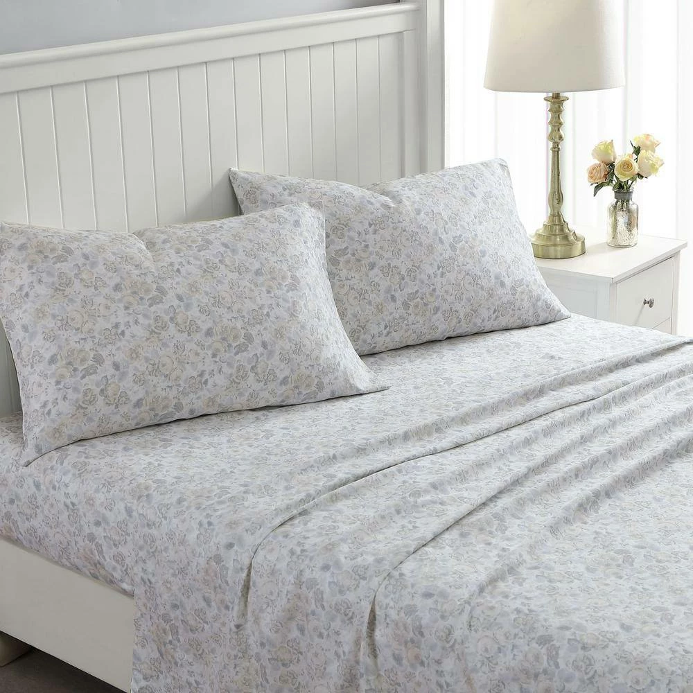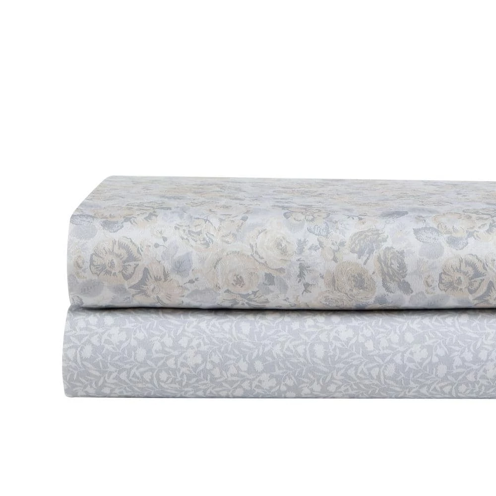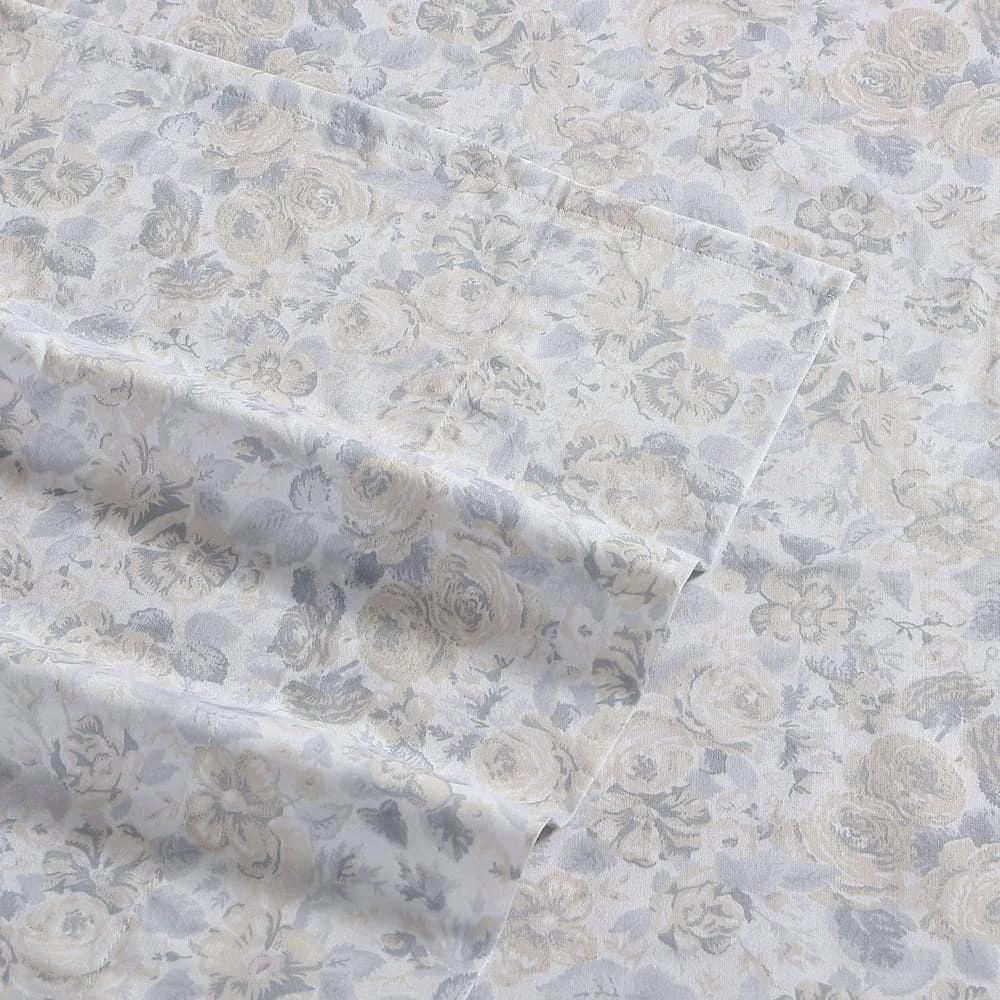 - Neutral and grey all over floral design on white sheets