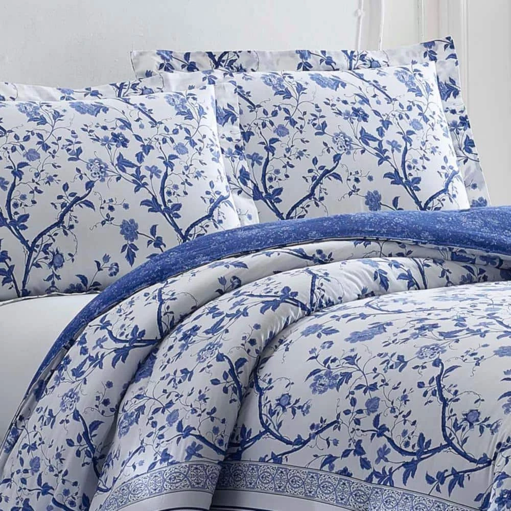 - The Laura Ashley Charlotte comforter set features a texture floral print in dark and light shades of blue. Reverse has a dark blue ground with a light blue floral pattern. Available in alternate sizes.