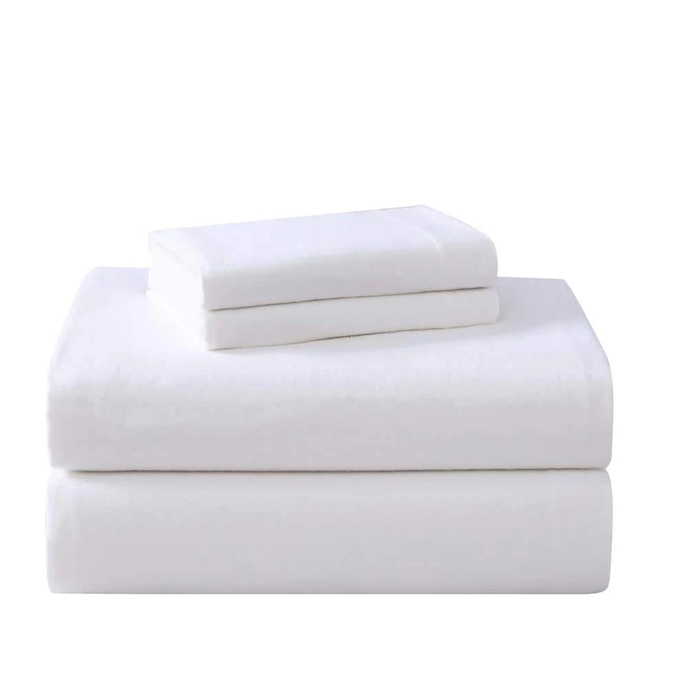- The Laura Ashley Solid Flannel Sheet Set in white