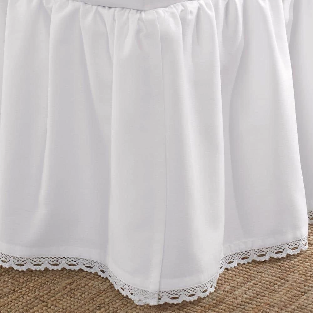 Bring gorgeous charm and elegance to your bedroom decor with the Laura Ashley Crochet Ruffle Bed skirt. This bedding accessory is decorated with a soft cotton sateen ruffled edge and is finished with an intricate lace trimmed edge. Bed skirt is machine washable for easy care. Twin bed skirt dimensions: (75″L x 39″W). Full bed skirt dimensions: (75″L x 54″W). Queen bed skirt dimensions: (80″L x 60″W). King bed skirt dimensions: (80″L x 78″W).