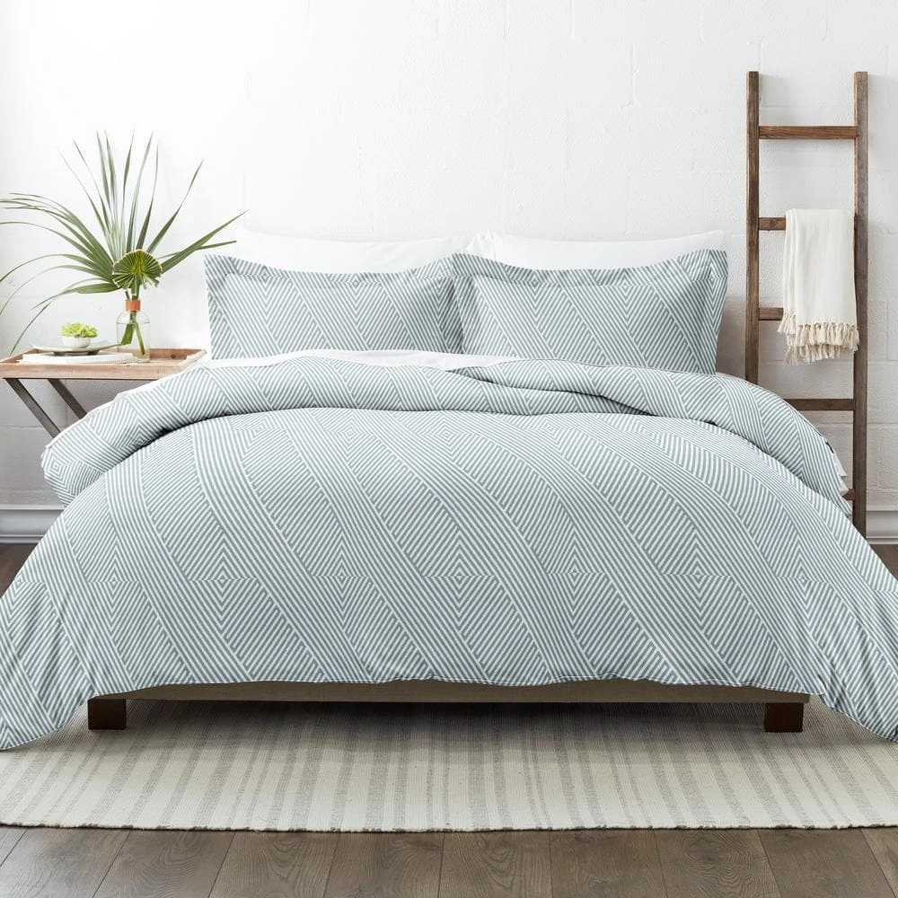 Give your old comforter or duvet insert a quick refresh with this 3 piece duvet cover set. Our premium yarns are twice as durable as cotton, wrinkle resistant and each piece has been double brushed for a super soft, comfortable feel. Featuring trendy new patterns, this set is the perfect blend of pattern and color.