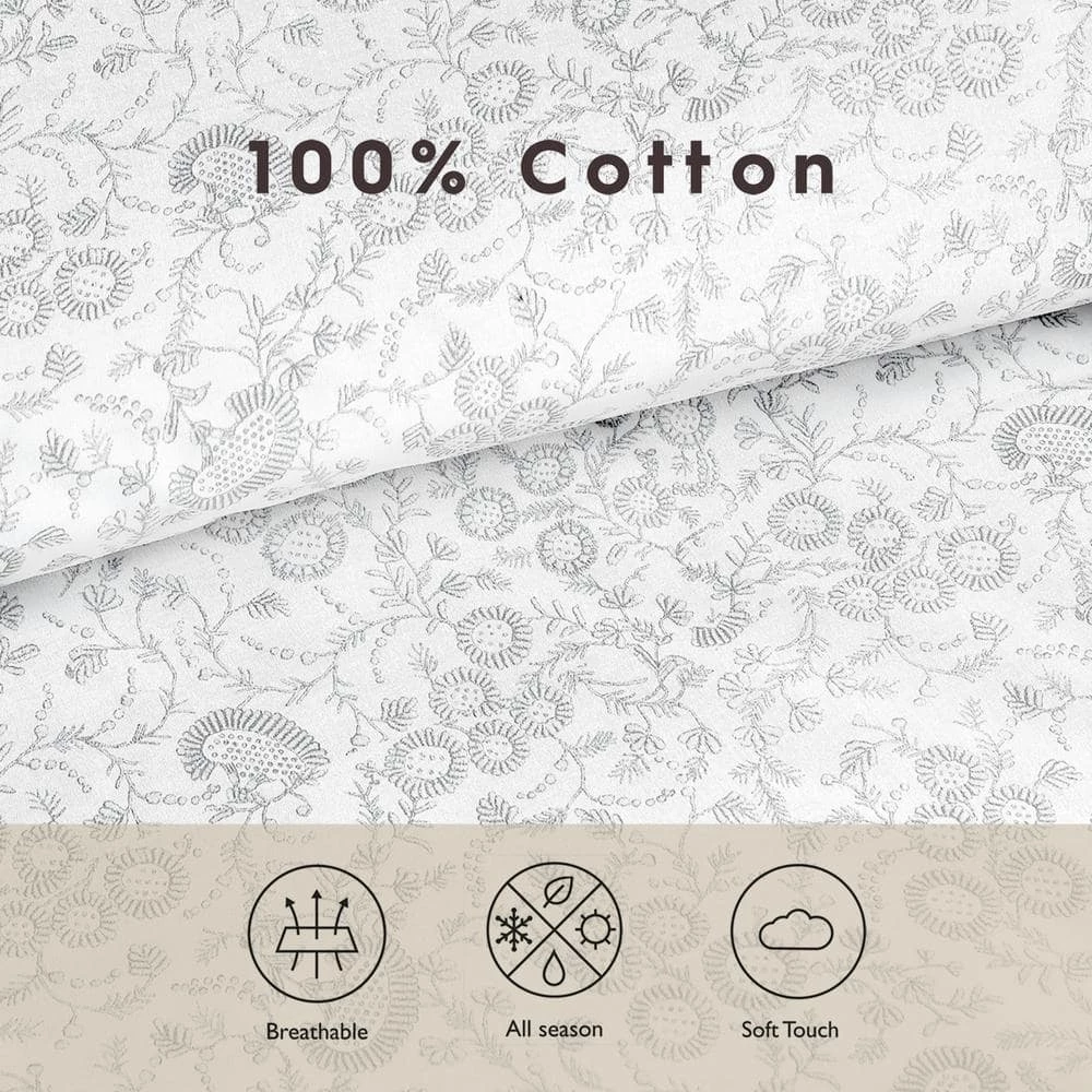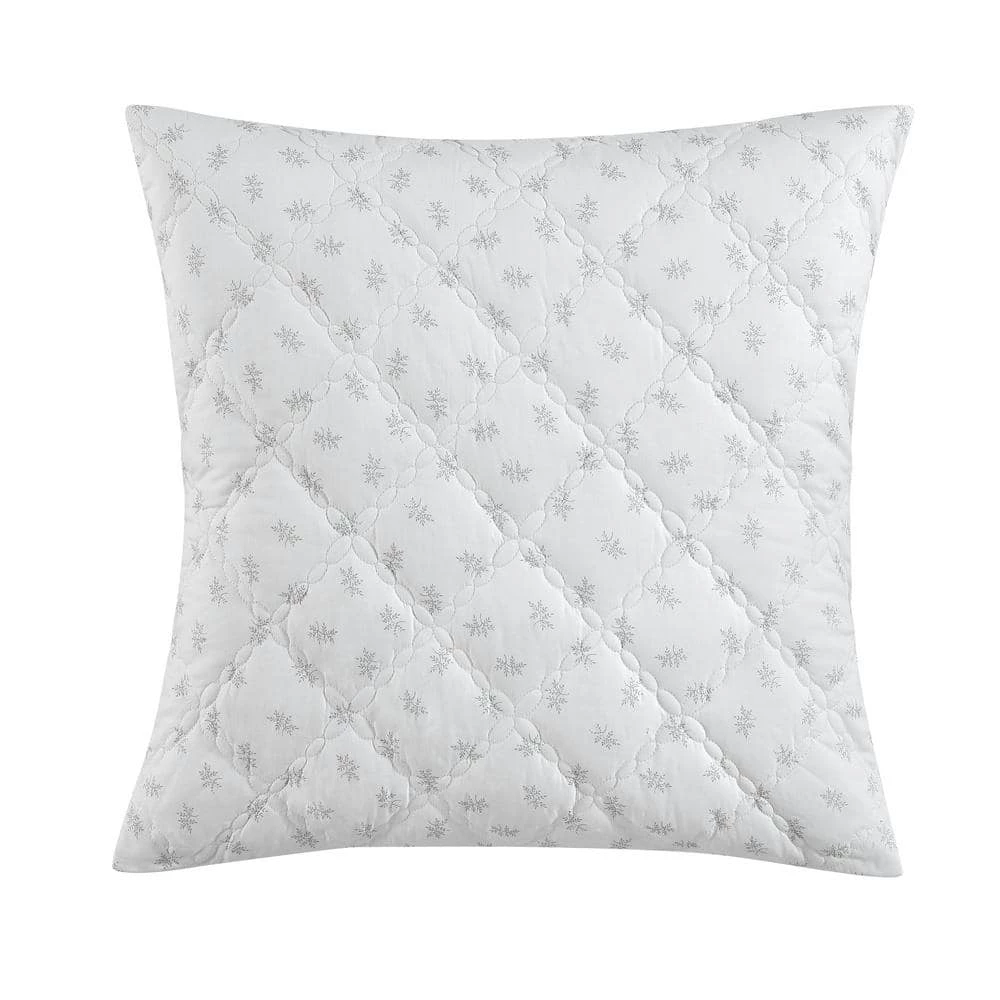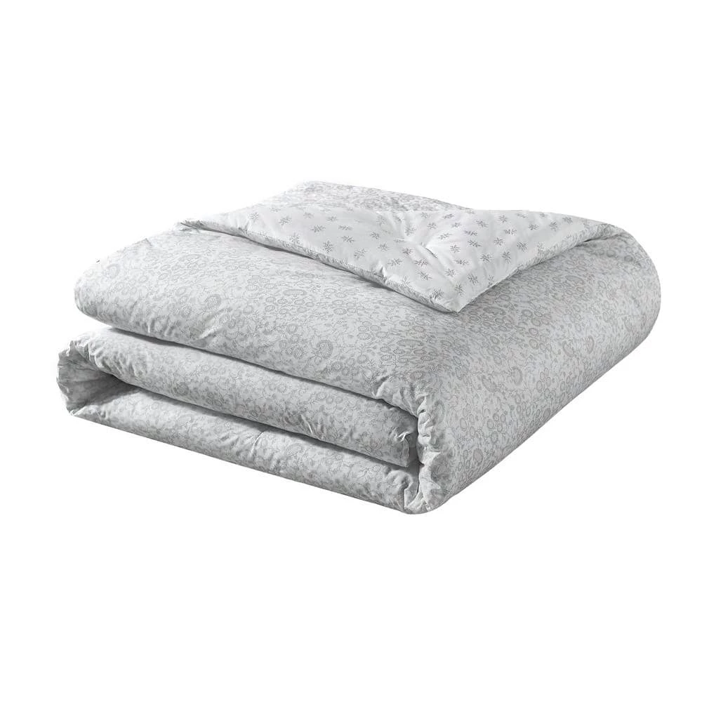 - Comforter and shams feature a delicate pale grey pattern, reverses to white with pale grey printed branches, euro sham and breakfast pillow feature white with pale grey printed branches , square pillow is white with grey embroidery
